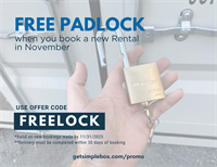 This November, Get Simple Box is helping you feel secure from the start. Rent or purchase any storage container at one of our local locations and receive a FREE Masterlock 6850 Padlock — a $40 value, yours at no cost.